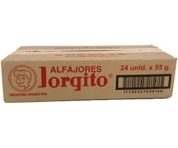 Alfajor Jorgito Chocolate. Caja de 24 unidades de peso 50 grs cada uno.